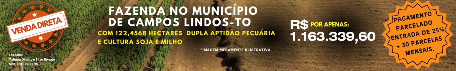 FAZENDA STA. FÉ COM 122,4568 HECTARES - DUPLA APTIDÃO PECUÁRIA E CULTURA SOJA E MILHO - LOCALIZADA NO MUNICÍPIO DE CAMPOS LINDOS-TO