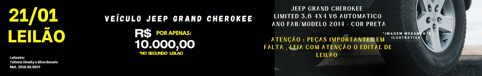 VEÍCULO JEEP GRAND CHEROKEE LIMITED 3.6 4X4 V6 AUT, ANO FAB/MODELO 2014 - COR PRETA, PLACA: ONQ-9799 - COD FIPE: 017.024-0
