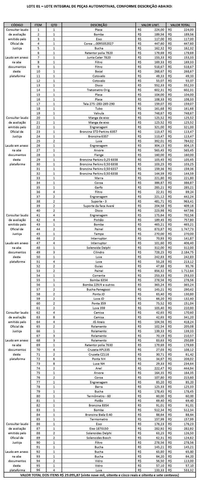 | R$ | 29.095,87 | Lance inicial |