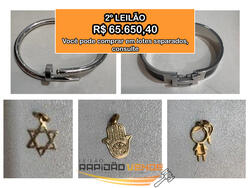LOTE 01 ÚNICO- CONTENDO A DESCRIÇÃO EM SEPADO DE CADA BEM, SEGUIDOS DO VALOR DA AVALIAÇÃO PERTINENTE AO 1º LEILÃO E LOGO AO VALOR COM O DESCONTO PERMITIDO EM LEI PARA O 2º LEILÃO EM CONFORMIDADE COM A LEGISLAÇÃO. 01 (um) brinco unitário redondo, em metal amarelo, sendo bijuteria, sem marca aparente R$ 2,00 R$ 2,00 R$ 1,60 01 (uma) pulseira em ouro amarelo, peso 1.9g em bom estado de conservação R$ 1.270,00 R$ 1.270,00 R$ 1.016,00 01 (uma) pulseira em ouro amarelo, contendo 05 berloques em ouro amarelo, peso 10.4g em bom estado de conservação R$ 6.400,00 R$ 6.400,00 R$ 5.120,00 01 (uma) pulseira em ouro amarelo, peso 1.9g em bom estado de conservação R$ 1.271,00 R$ 1.271,00 R$ 1.016,80 01 (uma) pulseira em ouro amarelo, peso 0.9g em bom estado de conservação R$ 602,00 R$ 602,00 R$ 481,60 01 (uma) pulseira em ouro amarelo, peso 2.7g em bom estado de conservação R$ 1.806,00 R$ 1.806,00 R$ 1.444,80 01 (uma) pulseira em ouro amarelo, peso 5.0g em bom estado de conservação R$ 3.000,00 R$ 3.000,00 R$ 2.400,00 01 (uma) pulseira em ouro amarelo, peso 3.6g em bom estado de conservação R$ 2.408,00 R$ 2.408,00 R$ 1.926,40 01 (uma) pulseira infantil em ouro amarelo, peso 0.5g, em bom estado de conservação R$ 335,00 R$ 335,00 R$ 268,00 01 (uma) pulseira infantil com 3 bolinhas em ouro amarelo, peso 1.0g, em bom estado de conservação R$ 670,00 R$ 670,00 R$ 536,00 01 (uma) pulseira em ouro amarelo, peso 7.8g em bom estado de conservação R$ 5.100,00 R$ 5.100,00 R$ 4.080,00 01 (um) anel solitário ouro branco, peso 1.1g R$ 650,00 R$ 650,00 R$ 520,00 01 (uma) aliança em ouro amarelo, com 08 pedras na cor verde R$ 690,00 R$ 690,00 R$ 552,00 01 (uma) aliança em ouro amarelo, peso 1.2g, em razoável estado de conservação, R$ 400,00 R$ 400,00 R$ 320,00 01 (uma) aliança em ouro amarelo, peso 1.4g, em razoável estado de conservação R$ 550,00 R$ 550,00 R$ 440,00 01 (um) colar com pingente em ouro amarelo, peso 2.6g R$ 1.740,00 R$ 1.740,00 R$ 1.392,00 01 (um) colar em ouro amarelo, peso 6.4g R$ 3.450,00 R$ 3.450,00 R$ 2.760,00 01 (um) colar em ouro amarelo, peso 3.5g R$ 2.250,00 R$ 2.250,00 R$ 1.800,00 01 (um) colar em ouro amarelo, peso 2.4g R$ 1.550,00 R$ 1.550,00 R$ 1.240,00 01 (um) colar em ouro amarelo, peso 3.2g R$ 1.850,00 R$ 1.850,00 R$ 1.480,00 01 (um) colar em ouro amarelo, peso 5.1g R$ 3.100,00 R$ 3.100,00 R$ 2.480,00 01 (um) colar com pingente em ouro amarelo, peso 1.3g R$ 870,00 R$ 870,00 R$ 696,00 18 (dezoito) gemas similares a esmeralda na cor verde, com aproximadamente 2mm, peso total de 0,65ct R$ 130,00 R$ 130,00 R$ 104,00 02 (duas) gemas similares a esmeralda na cor verde, com aproximadamente 4mm cada, peso total de 0,65ct R$ 900,00 R$ 900,00 R$ 720,00 02 (duas) gemas em formato redondo e 03 (três) gemas em formato gota azul, Acabamento: bom, Fabricação: sem informação. Valor Unitário de R$ 25,00 (Vinte e cinco reais), R$ 125,00 R$ 125,00 R$ 100,00 01 (um) anel bijuteria com pedras na cor verde R$ 20,00 R$ 20,00 R$ 16,00 01 (um) anel bijuteria com pedras na cor verde R$ 25,00 R$ 25,00 R$ 20,00 01 (uma) Pulseira fina esmaltada com apliques metálicos folheados a ouro branco com detalhes pretos, armazenada em um saco porta-joias da marca HERMÉS. Objeto em ótimo estado de conservação R$ 2.800,00 R$ 2.800,00 R$ 2.240,00 01 (uma) Pulseira em ouro branco, armazenada em um saco porta-joias da marca CARTIER. Objeto em ótimo estado de conservação R$ 27.250,00 R$ 27.250,00 R$ 21.800,00 01 (um) pingente de ouro, estrela de Davi, peso 0.3g R$ 200,00 R$ 200,00 R$ 160,00 01 (um) pingente de ouro, peso 0.5g R$ 335,00 R$ 335,00 R$ 268,00 01 (um) pingente de ouro, modelo menina, peso 0.7g R$ 460,00 R$ 460,00 R$ 368,00 01 (um) pingente de ouro, peso 0.5g R$ 335,00 R$ 335,00 R$ 268,00 01 (um) filtro de ar para motocicleta, cor prateada, sem marca e número de série aparentes, R$ 100,00 R$ 100,00 R$ 80,00 05 (cinco) Caixa de som, cor preta, marca JBL, modelo STAGE 600CE, 150W Max Power, números de séries EV0103-HI0030059, EV0103-FI0027984, EV0103-JH0016911, EV0103-IH0016052, EV0103-IH0016007. Objetos nas caixas, aparentemente sem uso e ótimo estado de conservação, Valor Unitário R$ 250,00 (duzentos e cinquenta reais) R$ 1.250,00 R$ 1.250,00 R$ 1.000,00 02 (dois) tweeters pequena da marca JBL, sem modelo e número de série aparentes, aparentemente sem uso e bom estado de conservação, valor unitário R$ 25,00 (vinte e cinco reais). R$ 50,00 R$ 50,00 R$ 40,00 01 (uma) caixa de som da marca JBL, modelo GO2BLK, número de série NDO160- AK6909571. Objeto na caixa lacrada, aparentemente sem uso, estado de conservação era de novo R$ 90,00 R$ 90,00 R$ 72,00 01 (um) controle remoto de longa distância marca STETSON, na cor preta e em ótimo estado de conservação, dentro da embalagem R$ 100,00 R$ 100,00 R$ 80,00 46 (quarenta e seis) Led para farol, Led Hedlight, marca C6, modelo 9005 HB3. 150W/20000LM, Valor R$ 90,00 (noventa reais) cada R$ 4.140,00 R$ 4.140,00 R$ 3.312,00 01 (um) amplificador de som automotivo da marca TARAMPS, nas cores preto e prata, modelo Md-1800.1, Nº. Série 00080002002467. Apresentando ótimo estado de conservação, na embalagem R$ 350,00 R$ 350,00 R$ 280,00 03 (três) caixas de lâmpada de energia solar solar light operated sensor led street, modelo T8502SMD e sem mais informações, Valor R$ 15,00 (quinze reais) cada R$ 45,00 R$ 45,00 R$ 36,00 02 (duas) caixas de som portátil, ativada por voz, cor preta, marca JBL, modelo LINk 10, número de serie TL0544-LI301199, se encontravam dentro de suas caixas e com caracteírsticas de novos e em ótimo estado conservação. Valor R$ 450,00 (quatrocentos e cinquenta reais) cada R$ 900,00 R$ 900,00 R$ 720,00 04 (quatro) Sacos plásticos cor prata contendo rolo de fita led. Fabricação: sem informação. Valor R$ 15,00 (quinze reais) cada R$ 60,00 R$ 60,00 R$ 48,00 01 (um) fogão cooktop quatro bocas de embutir, cor vermelha, marca FORNELLO, número de série 0606529714130. Objeto na caixa, 