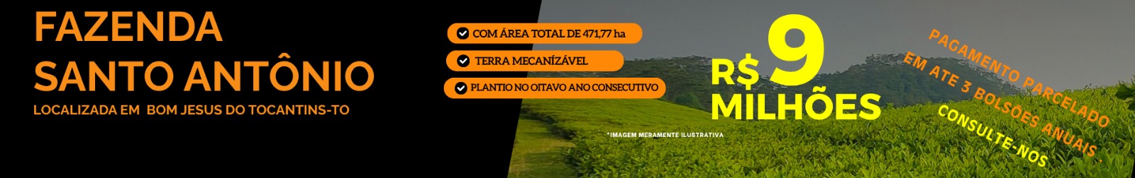 FAZ. DE SOJA COM 471,77 - COM PLANTIO NO OITAVO ANO CONSECUTIVO - TERRA MECANÍZÁVEL - LOCALIZADA NO MUNICÍPIO DE BOM JESUS DO TOCANTINS.