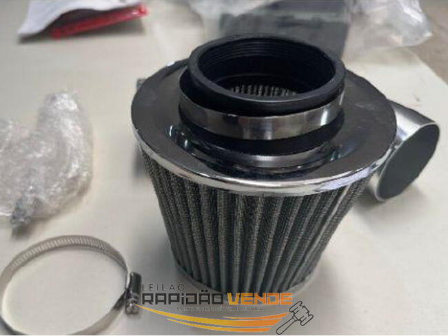 01 (UM) FILTRO DE AR PARA MOTOCICLETA, COR PRATEADA, SEM MARCA E NÚMERO DE SÉRIE APARENTES. AVALIADO EM R$ 100,00 (CEM REAIS).