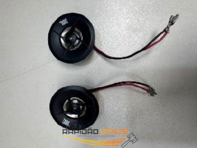 02 (DOIS) TWEETERS PEQUENA DA MARCA JBL, SEM MODELO E NÚMERO DE SÉRIE. APARENTEMENTE SEM USO E BOM ESTADO DE CONSERVAÇÃO, VALOR UNITÁRIO R$ 25,00 (VINTE E CINCO REAIS). AVALIADO EM R$ 50,00 (CINQUENTA REAIS).